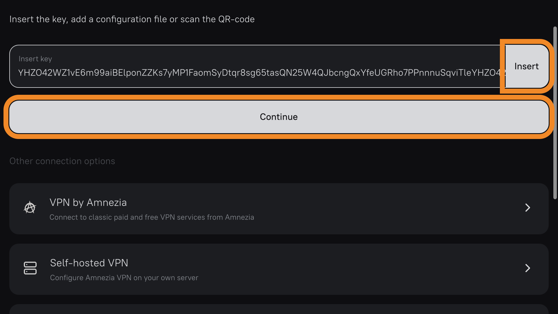 Use the second device where it’s convenient to copy the vpn:// connection key.