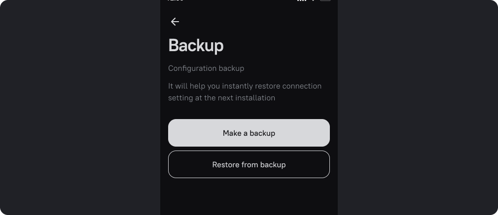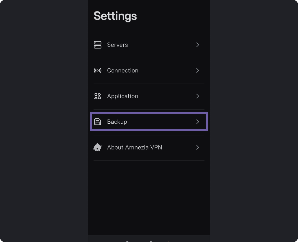 You can save the application settings (all connected servers with VPN protocols and services) to a file, and later load the file into any version of the application, on any device. In this tutorial we will look at how to backup your settings and how to restore them.