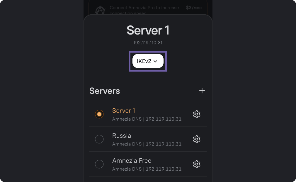Click on the white rectangle with the name of the VPN protocol, as in the screenshot.