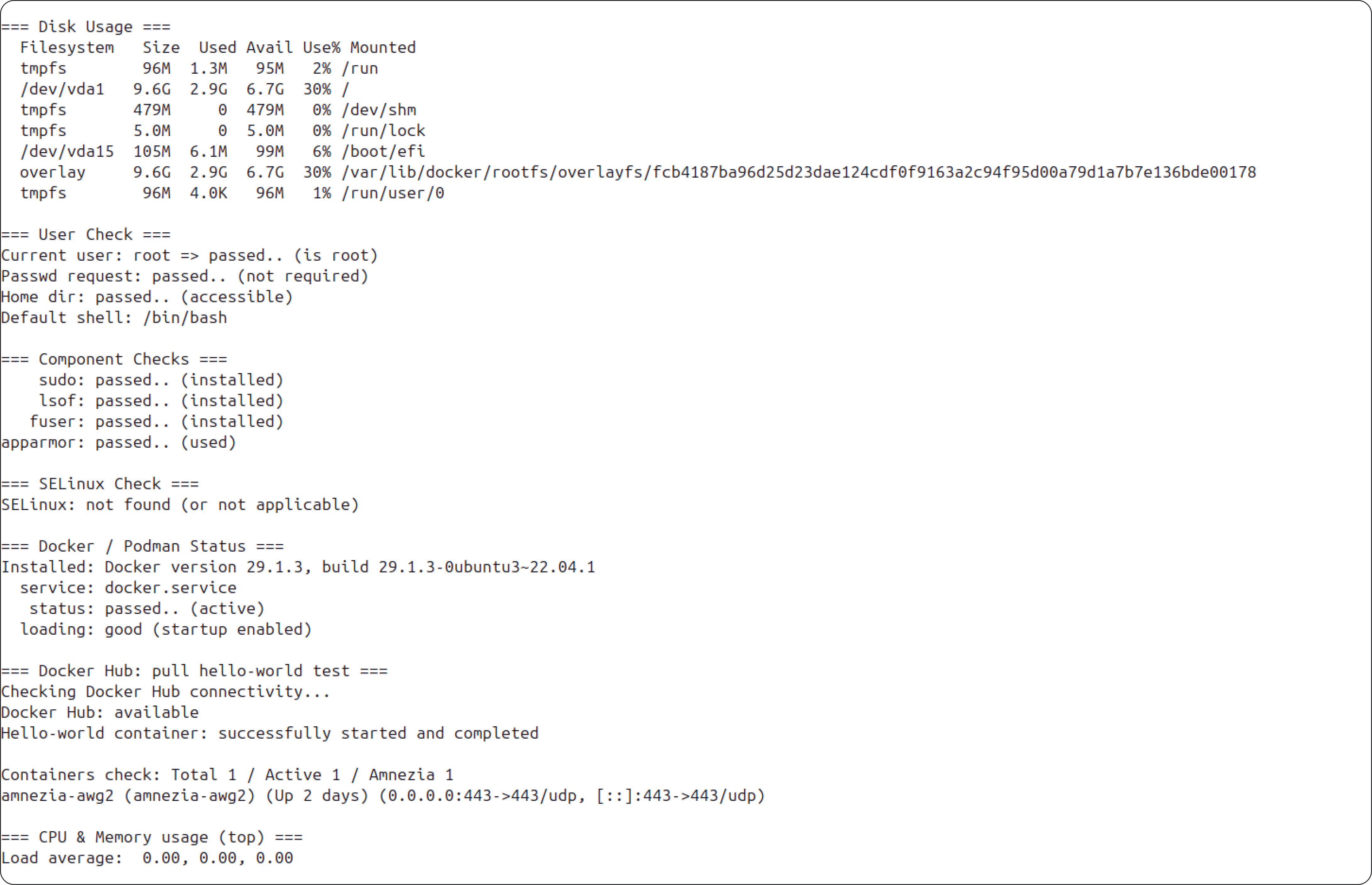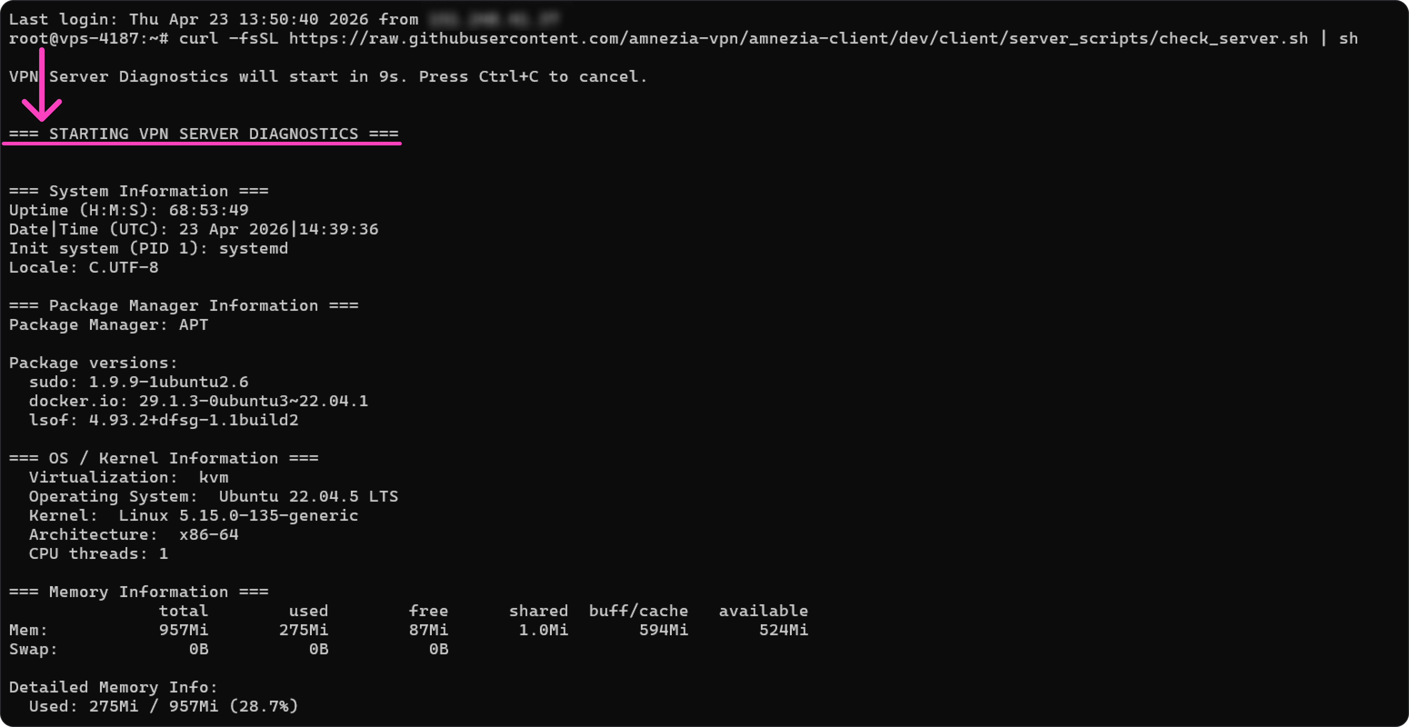 wget -qO- https://raw.githubusercontent.com/amnezia-vpn/amnezia-client/dev/client/server_scripts/check_server.sh | sh