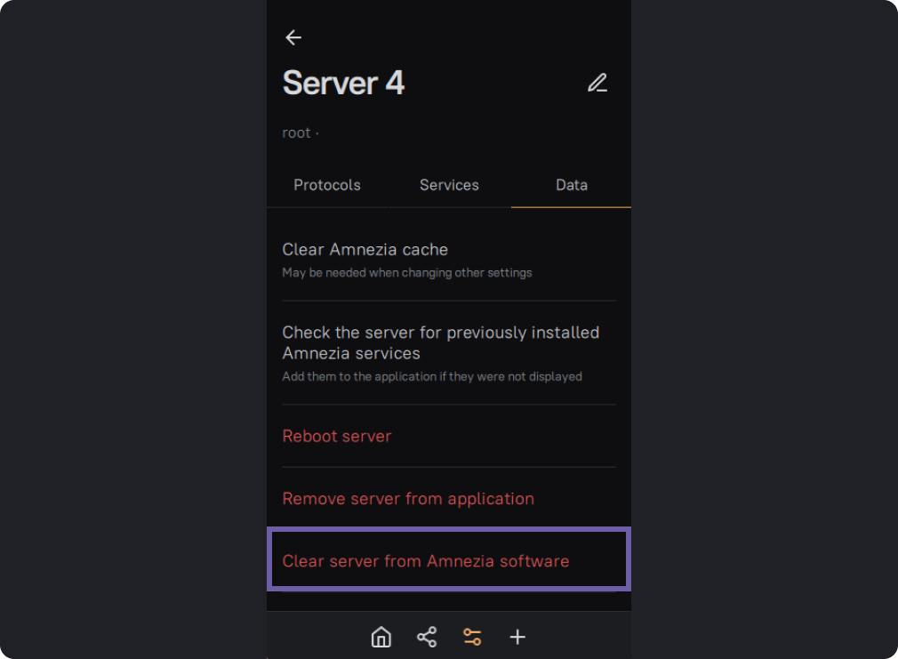 Select the "Data" tab. Select "Clear server from Amnezia software".