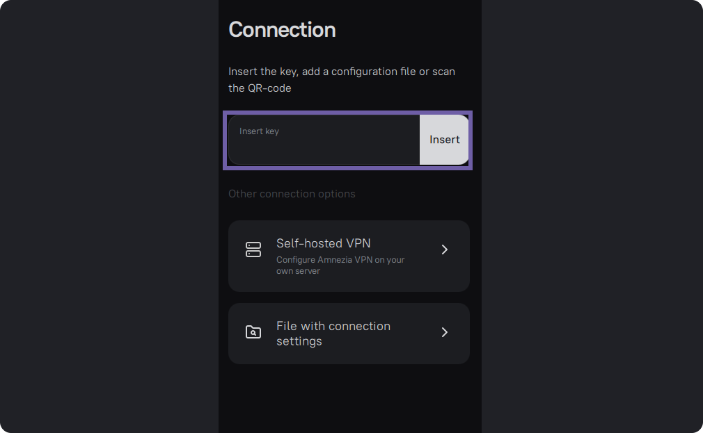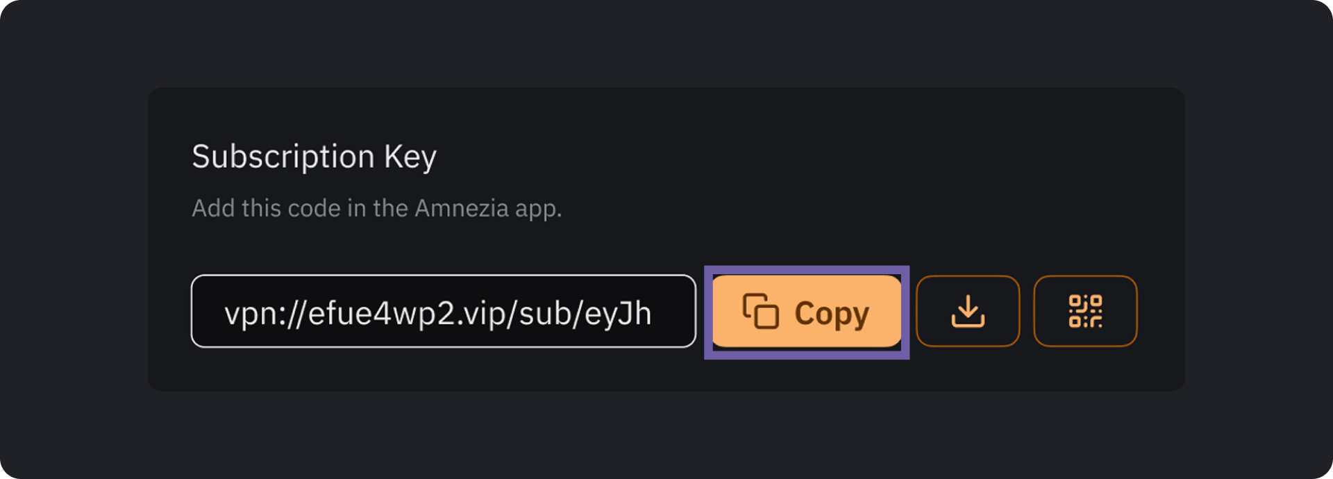 If you choose to use AmneziaWG, instead of a key, you will need to use configuration files from your Subscription Dashboard. One configuration file allows connection to only one location, can be used on only one device, and counts as one active connection.