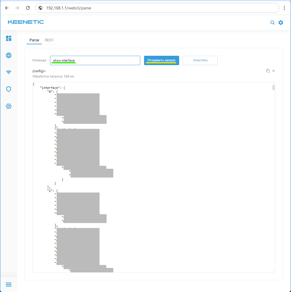 Получившуюся строку нужно вставить в веб-версии командной строки роутера и нажать кнопку "Отправить запрос". Если вы ввели правильную команду, ниже будет выведен результат обработки запроса как на приведённом скриншоте.