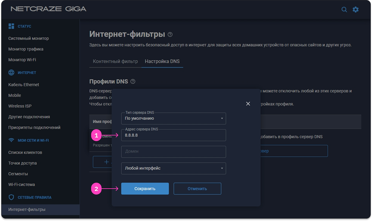 8.8.8.8и нажмите Сохранить.