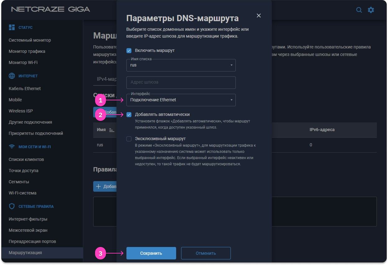 - Поставьте галочку Использовать для выхода в интернет и нажмите Сохранить.