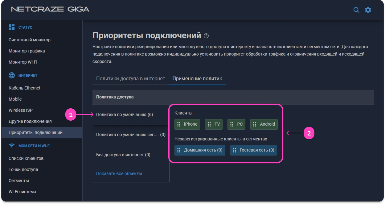 - Перейдите в Приоритеты подключений в разделе 🌐 Интернет.