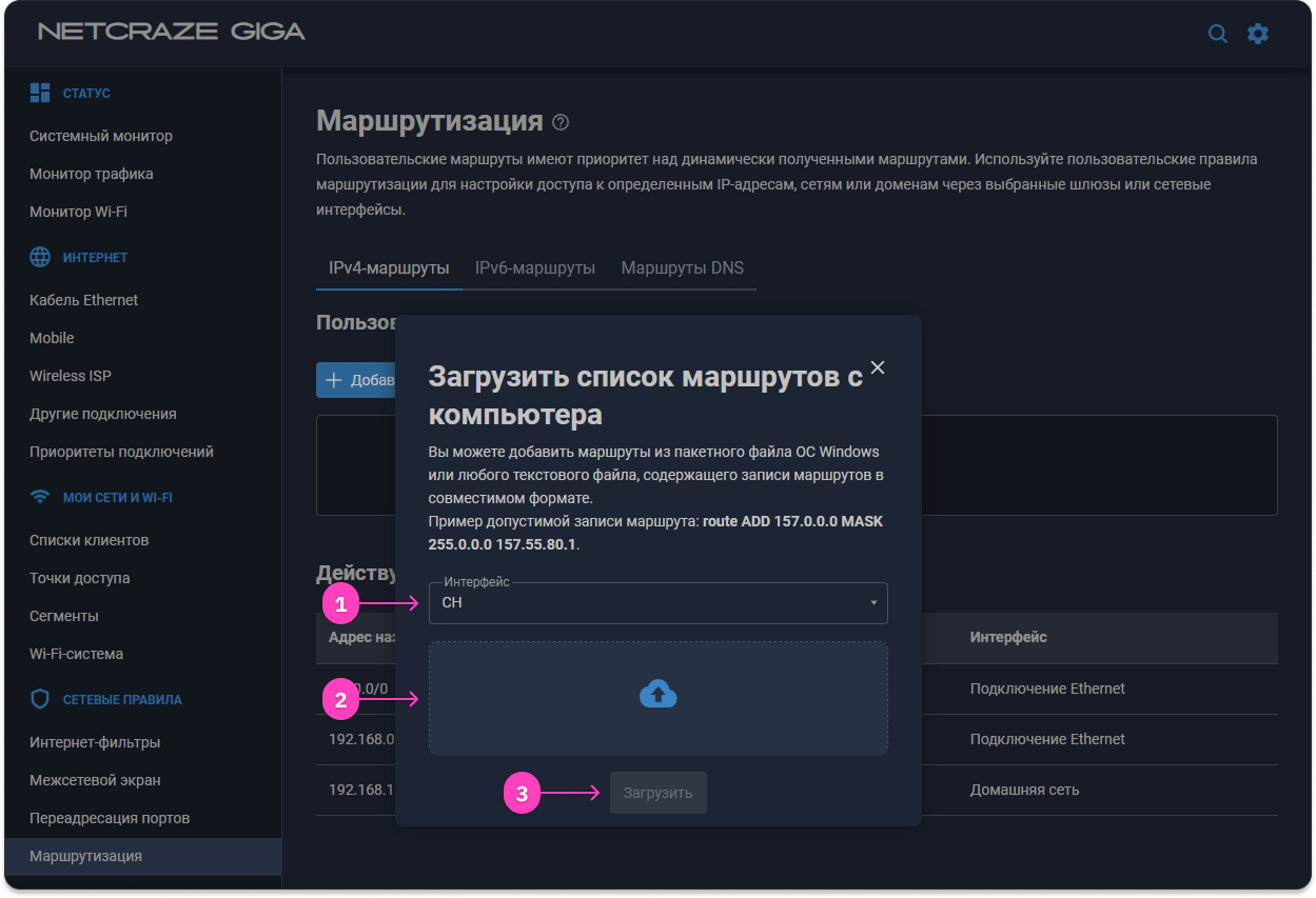 - Перейдите в Другие подключения в разделе 🌐 Интернет, нажмите Загрузить из файла и выберите файл конфигурации