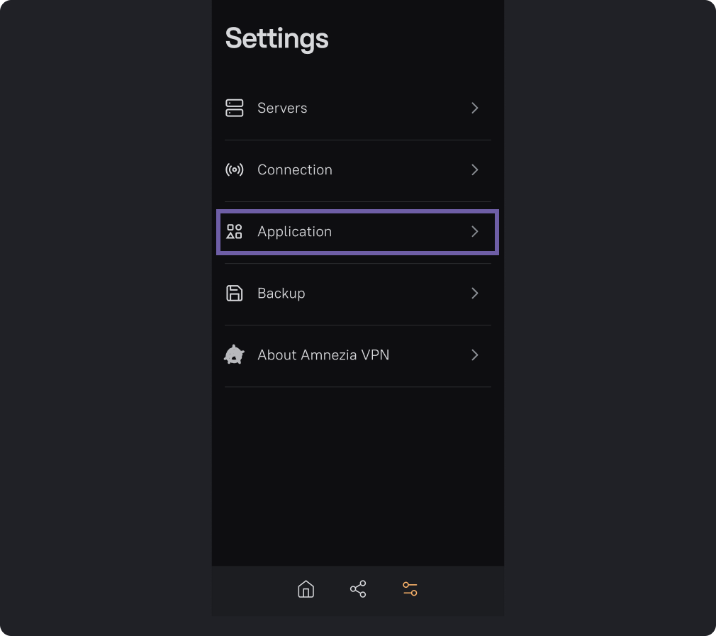 Next, go to the settings section "Application".