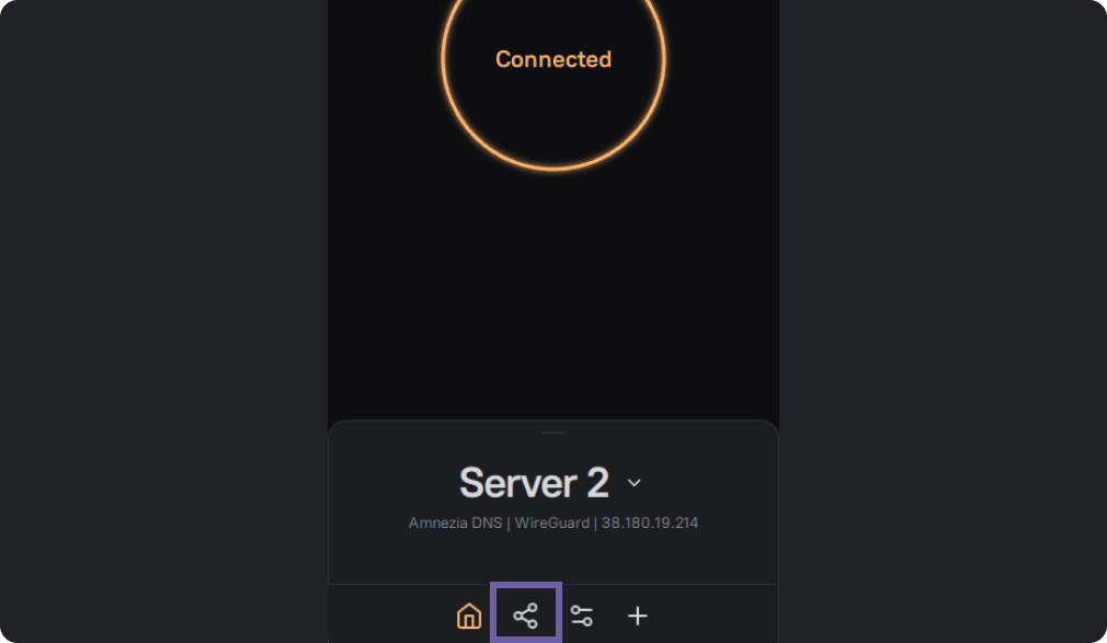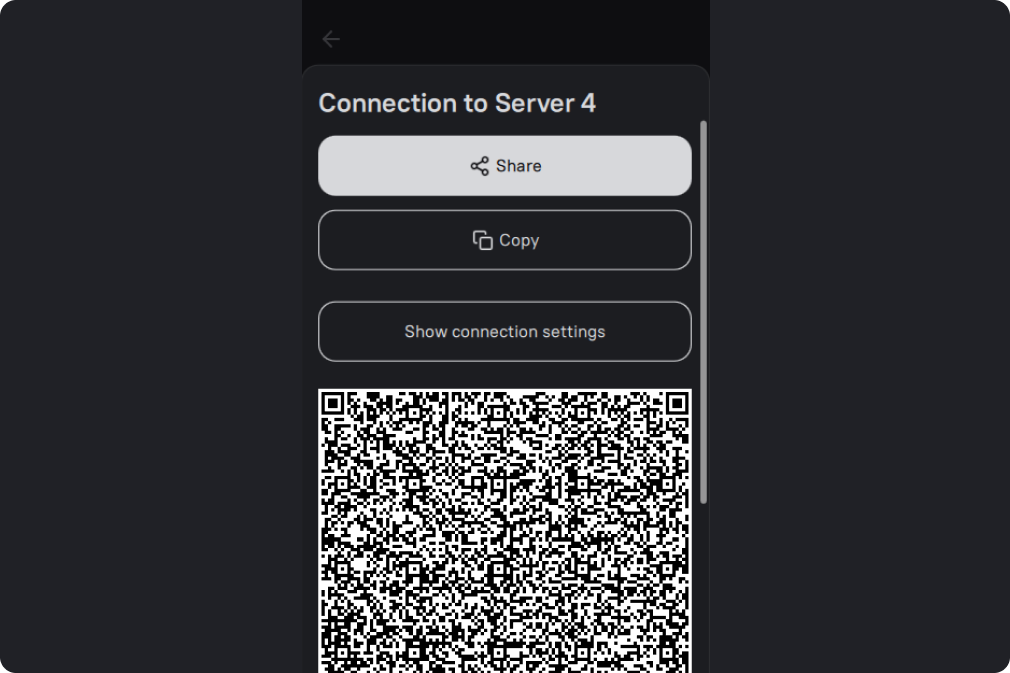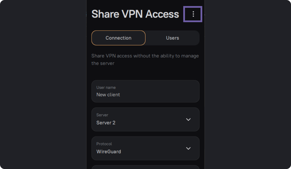 The app will suggest sharing full VPN access, click "Share". Ensure that the server you want to share is selected correctly and click "Share".
