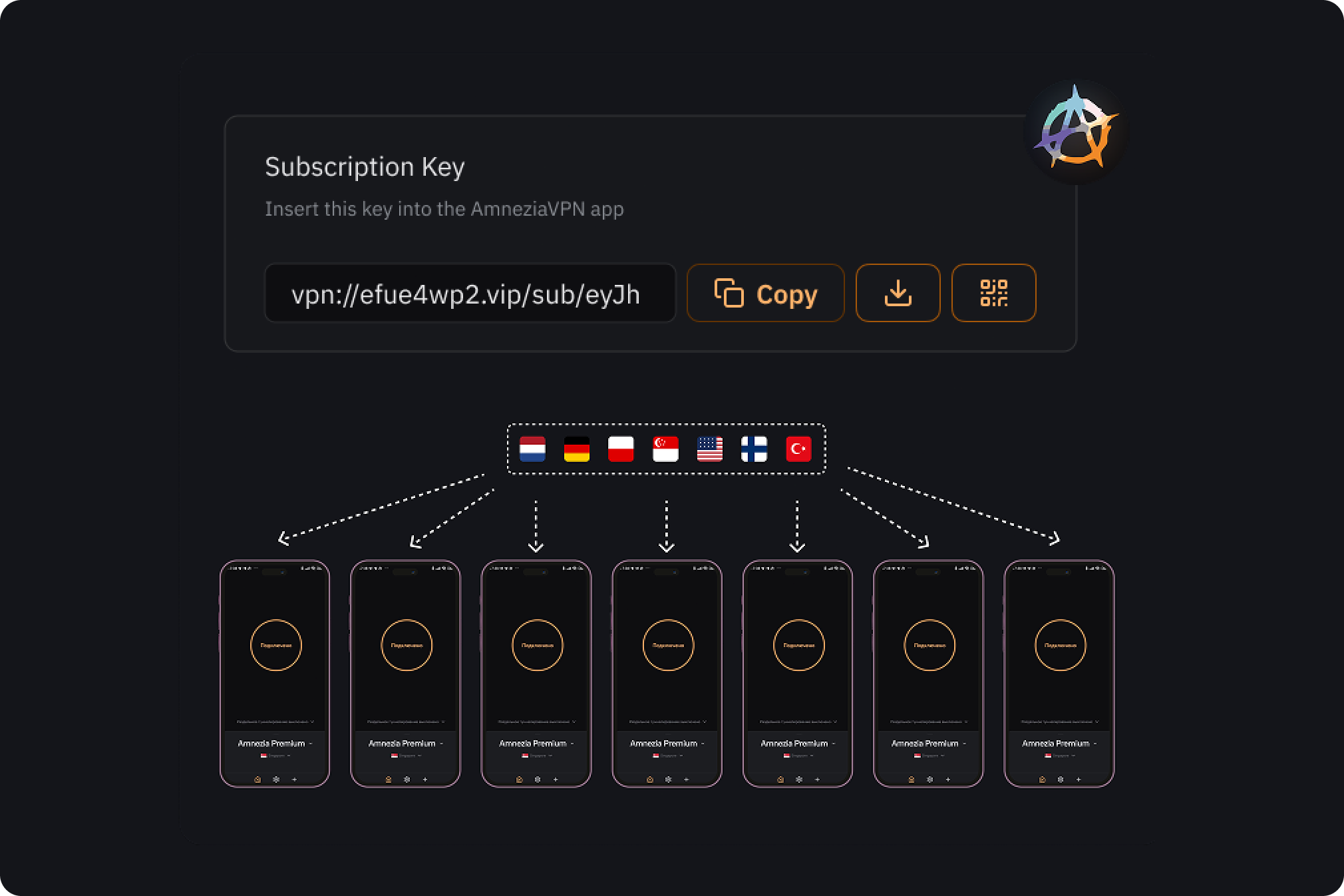 - Скопируйте ключ vpn:// из веб-версии личного кабинета или из письма с деталями заказа, которое вы получили после оплаты Premium-подписки.
