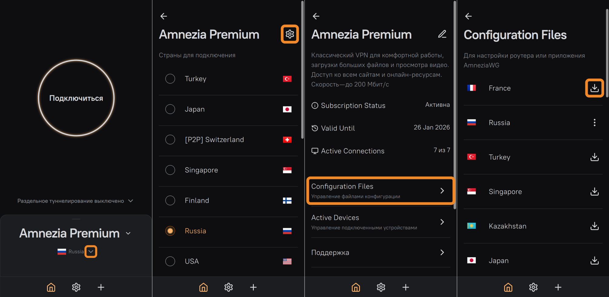Для Windows 7 — специальную версию AmneziaWG и файлы в формате .conf.