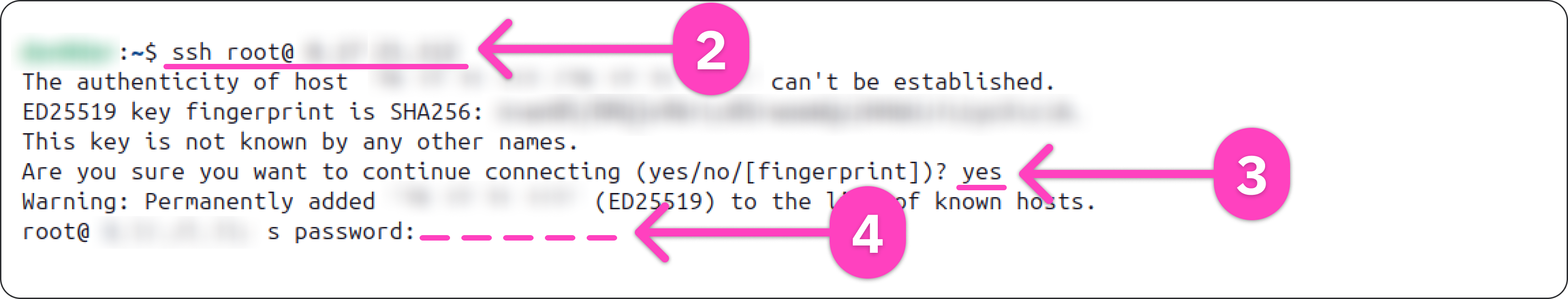 1. При первом подключении по SSH с устройства сервер попросит подтвердить fingerprint. Введите yes и нажмите Enter.