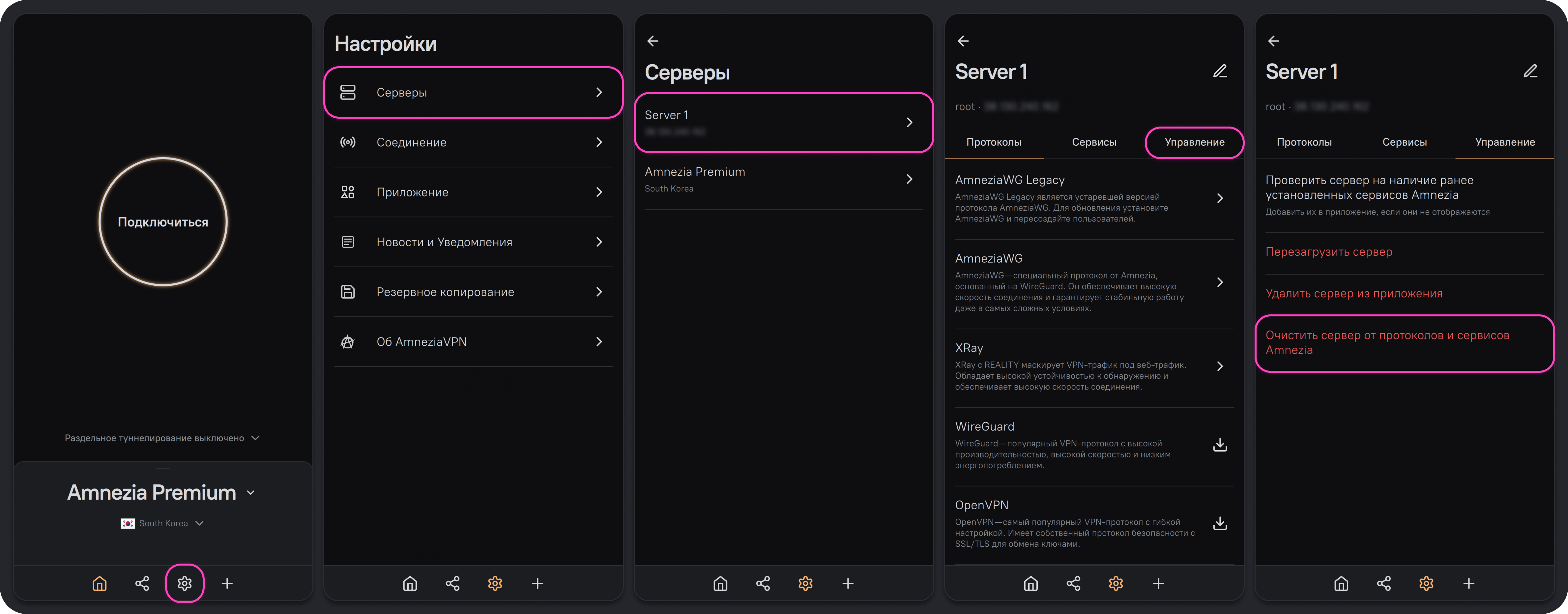 Очистка сервера от протоколов и сервисов Amnezia