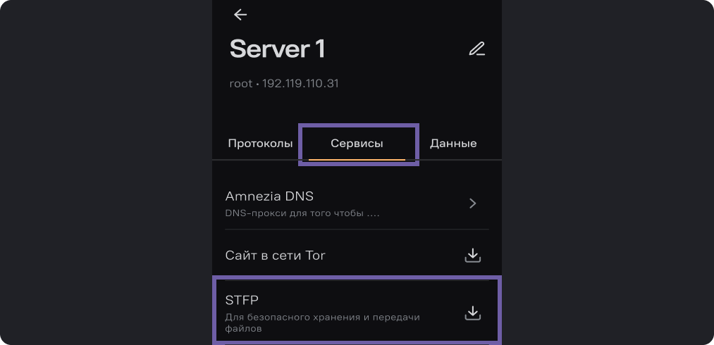 Во вкладке "Сервисы" выберете “SFTP”.