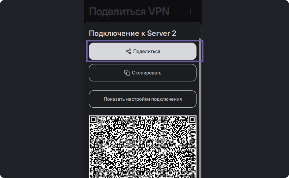 Пользователь, с которым вы поделились конфигурацией, сможет подключиться к VPN, через приложение Amnezia, здесь собраны более подробные инструкции: подключение с помощью QR-кода, ключа в виде текста, файла, или через альтернативные клиенты.