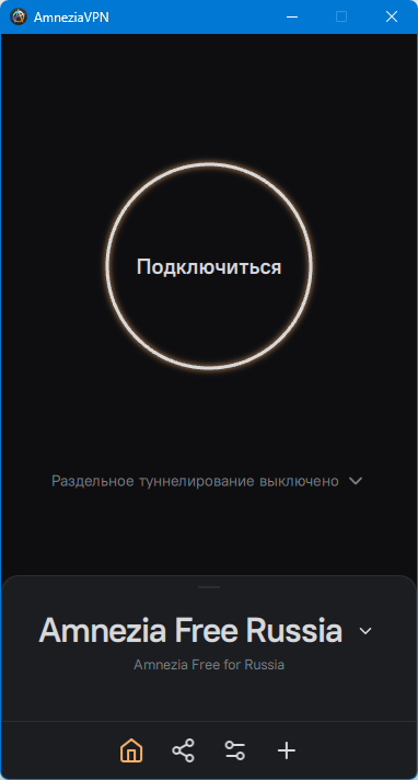 7. Попробуйте выполнить подключение, в клиенте AmneziaVPN