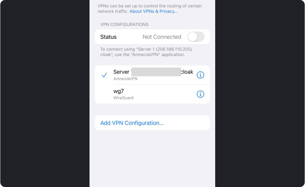 Go to system VPN settings, remove the Amnezia VPN profile, and try to connect again